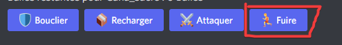 <figure><img src="https://2504575270-files.gitbook.io/~/files/v0/b/gitbook-x-prod.appspot.com/o/spaces%2FVanZfaIViFkFiwNHMkbA%2Fuploads%2FuElCG49XeRQOWuZyLWI8%2Fimage.png?alt=media&#x26;token=18095e66-dcd2-4a7c-a6be-672d142b91a0" alt=""><figcaption><p>Boutant permettant de fuire le combat.</p></figcaption></figure>