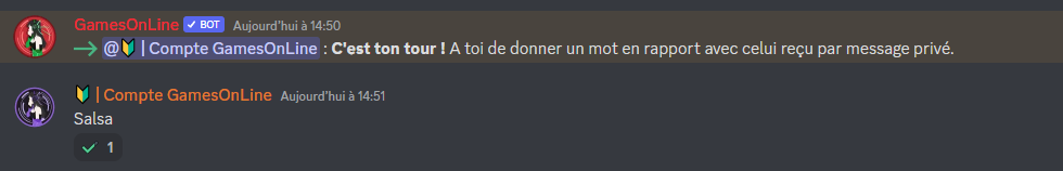 Au début de la partie, le Bot envoie un message à tous les joueurs indiquant le mot que celui-ci devra faire deviner. Mais attention, aucun joueur ne connait son rôle. Il devra donc le deviner par lui-même au fur et à mesure de la partie !