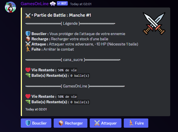 ***Exemple :*** *<mark style="color:yellow;">`g!battle p @cana_sucre`</mark>*