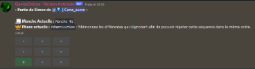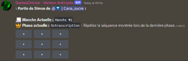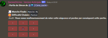 Le Simon est un jeu où le bot va vous montrer une séquence que vous devrez reproduire.